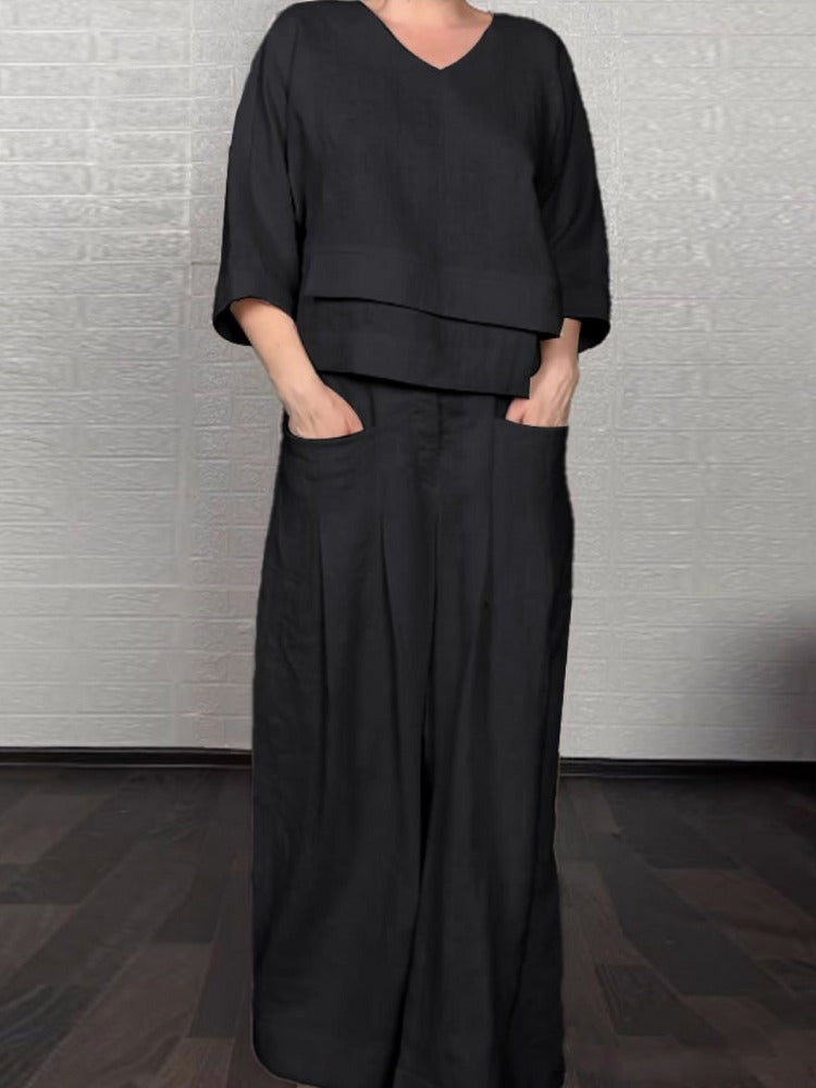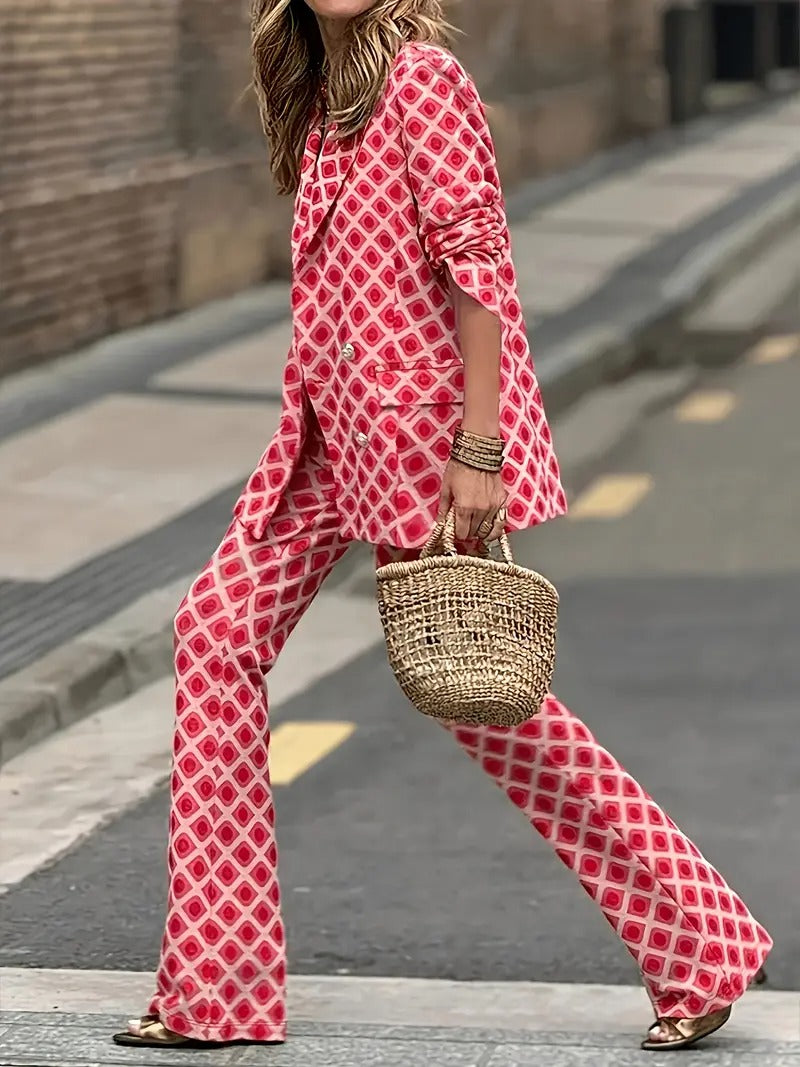 Ensemble blazer à revers et pantalon évasé pour femme chic