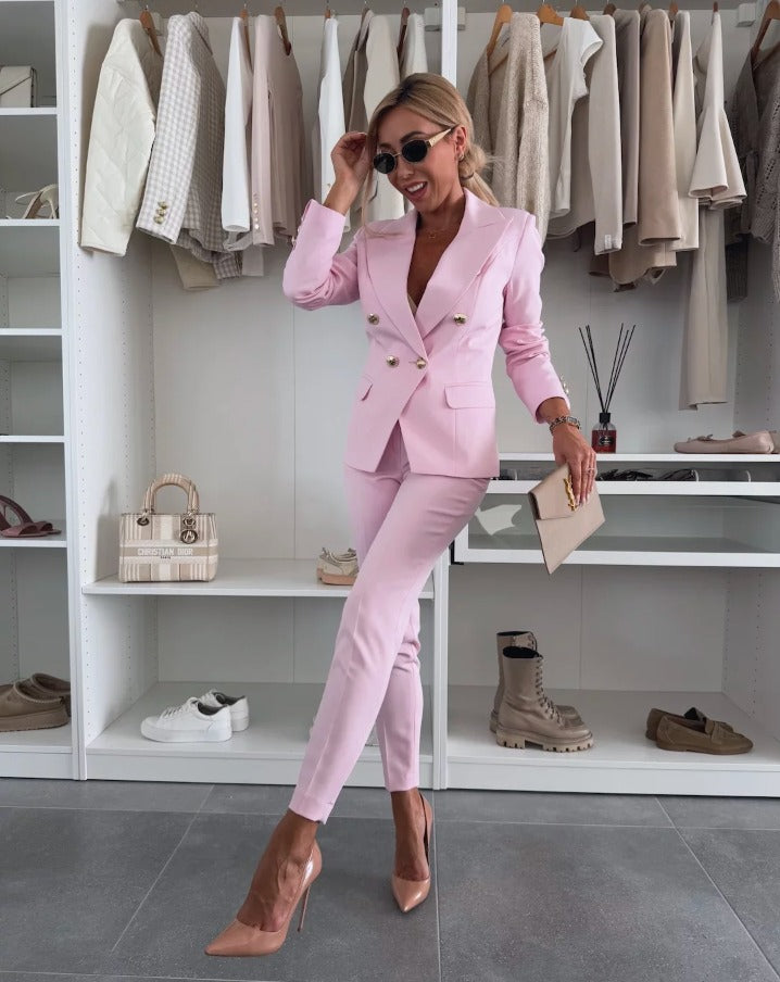 Ensemble chemisier en satin cache-cœur et pantalon large