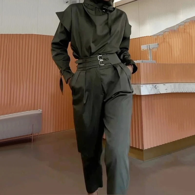 Ensemble, haut à manches longues et col roulé, pantalon large et ceinture