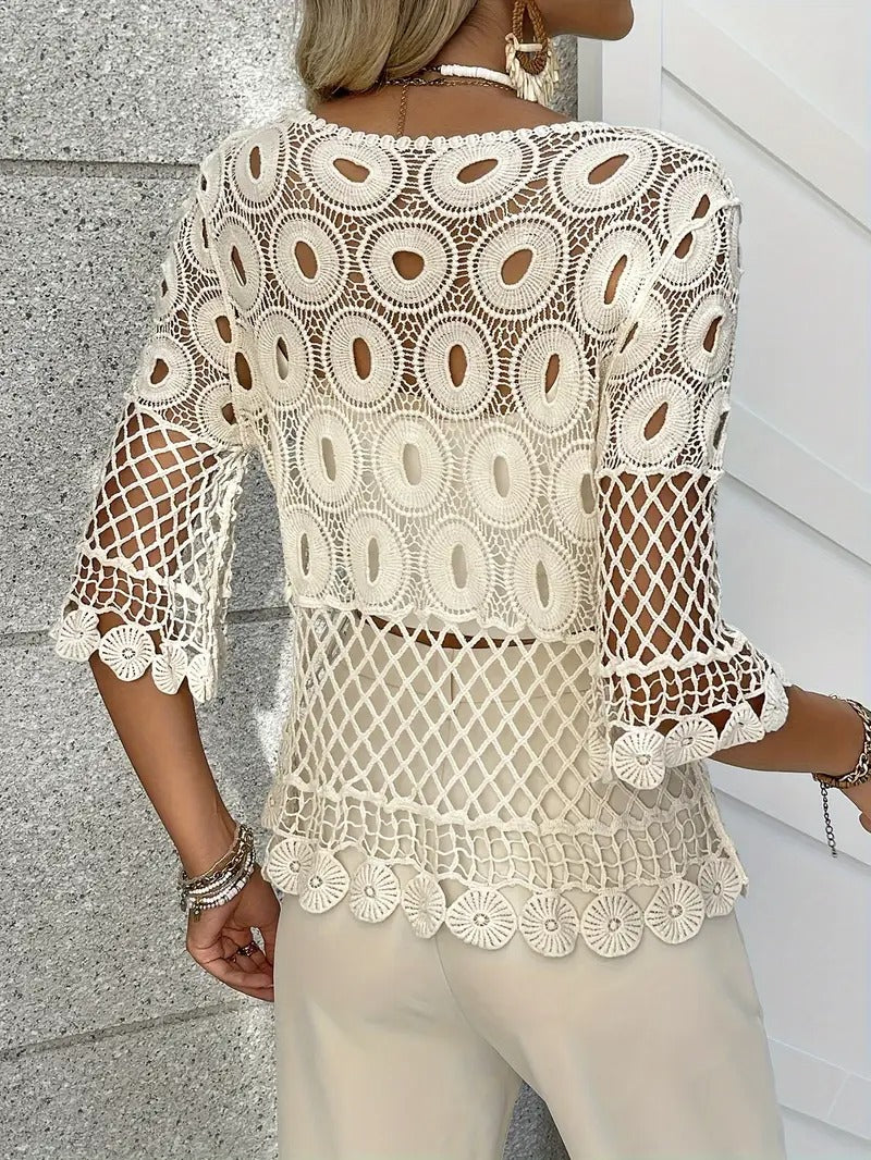Haut à col bénitier en satin et pantalon évasé à paillettes
