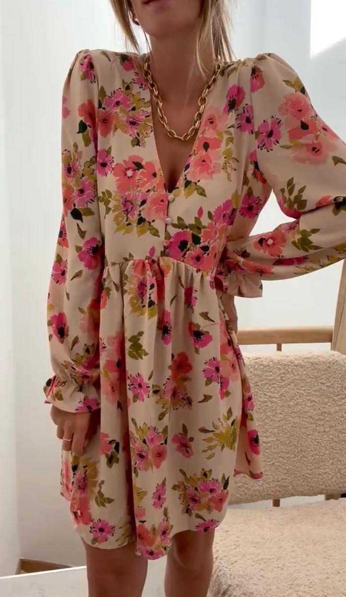 Robe ample à manches cloche et imprimé floral avec fente latérale