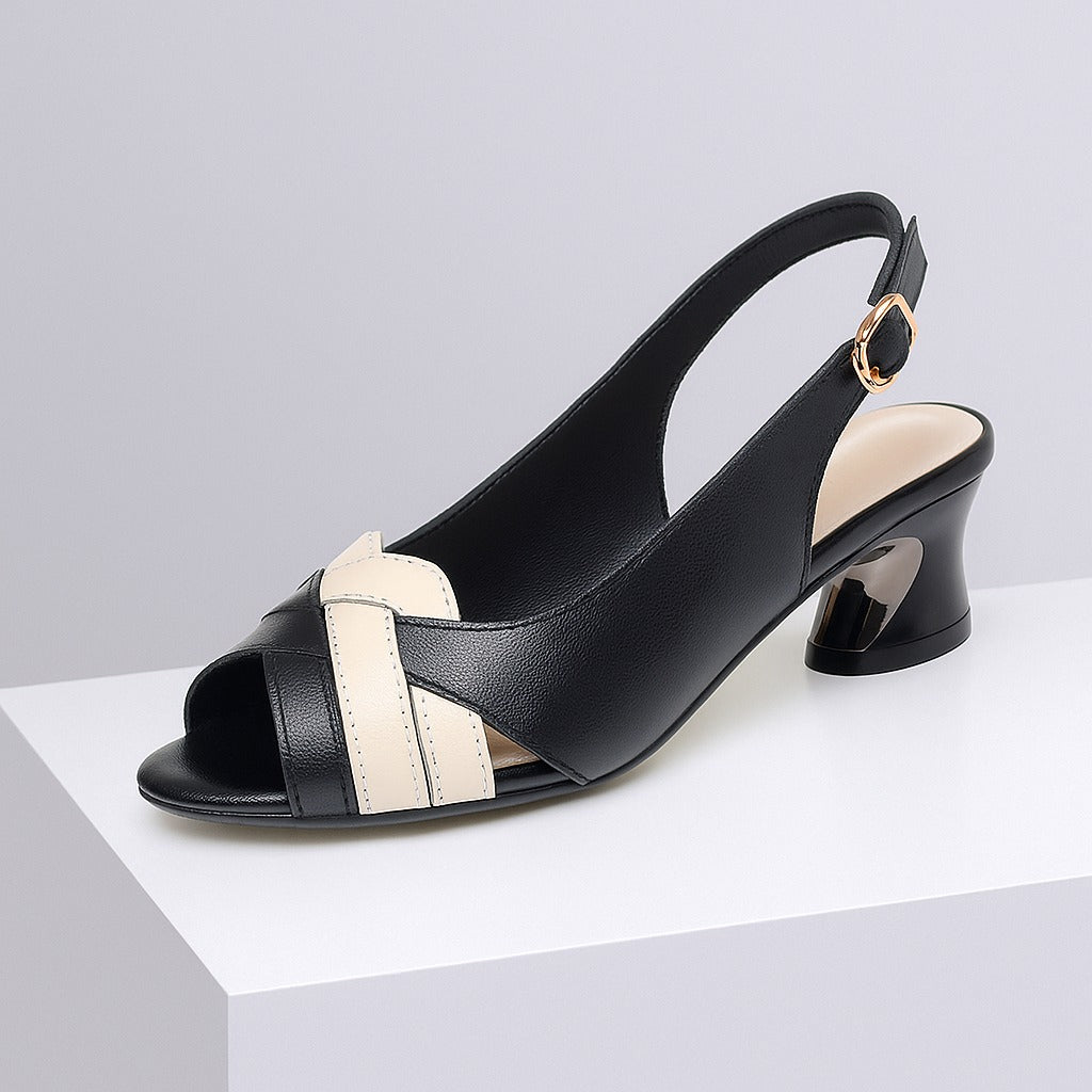 Confectionnées en cuir véritable et dotées d'une semelle intérieure orthopédique coussinée, ces chaussures à bride offrent un confort optimal tout au long de la journée et une touche d'audace chic à chaque pas. Leur bride croisée tissée apporte une structure raffinée, tandis que le talon bloc métallique et la bride arrière réglable offrent un maintien sûr et des détails remarquables. Un choix élégant pour une tenue polyvalente, de jour comme de nuit.