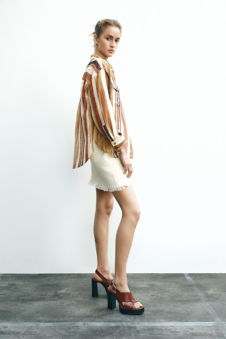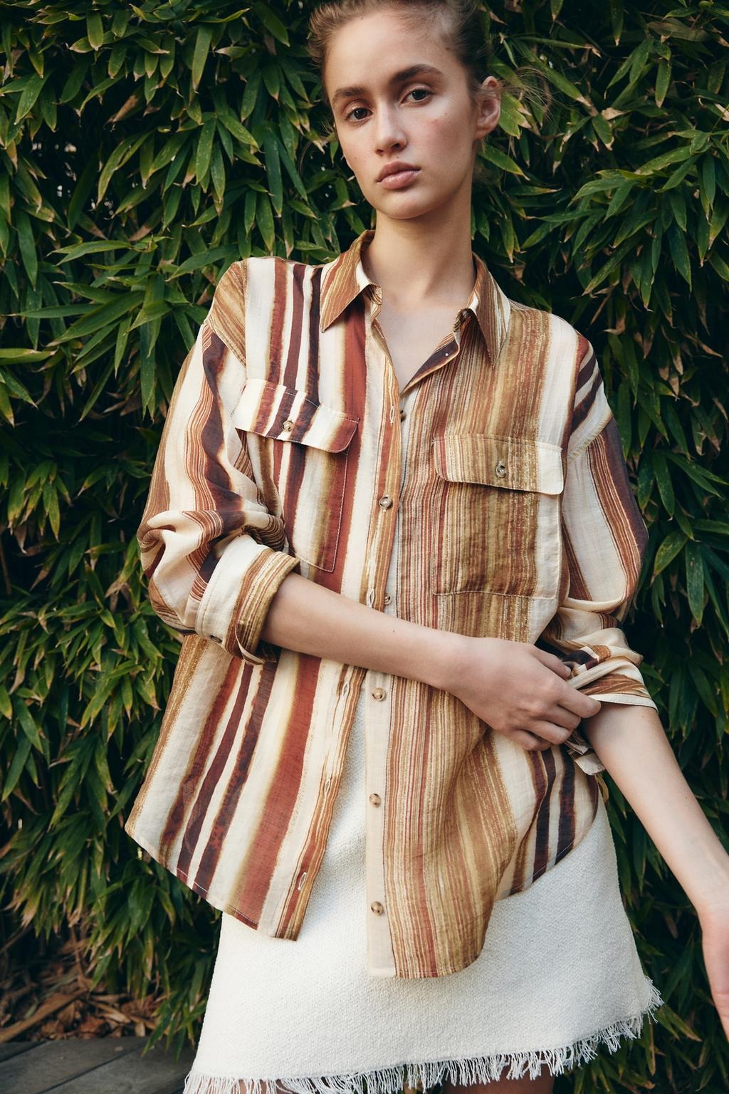 Adoptez un style décontracté-chic avec cette chemise rayée oversize à col à revers et manches longues. Dotée de poches à rabat sur la poitrine et d’une fermeture boutonnée sur le devant, elle apporte une touche à la fois structurée et fluide à vos tenues du quotidien.