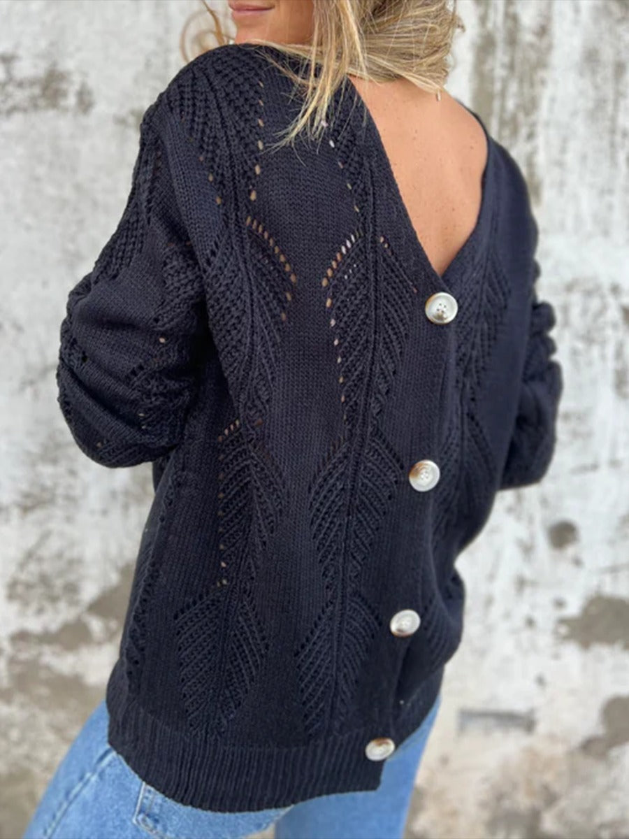 Pull à boutons réversibles en tricot à feuilles, une pièce originale et cosy qui combine style et praticité. Son motif délicat et sa texture douce en font un allié parfait pour affronter la fraîcheur tout en restant élégante.