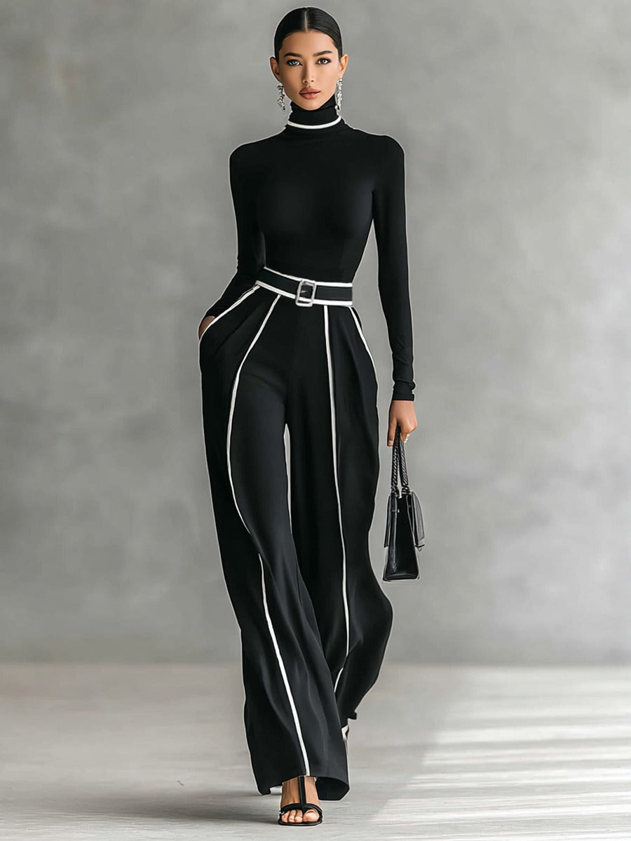 Élégant et confortable, cet ensemble col roulé et pantalon large allie simplicité et raffinement. Sa coupe fluide et son tissu doux offrent une allure moderne et décontractée, parfaite pour les journées au bureau ou les moments de détente.