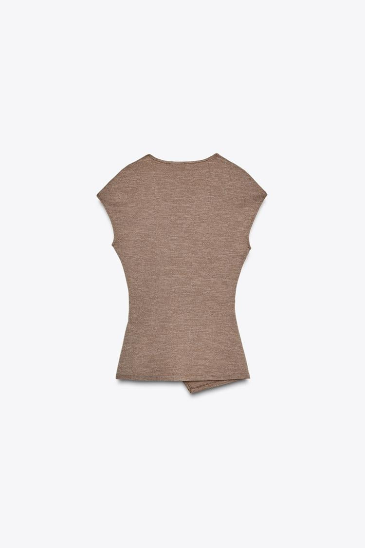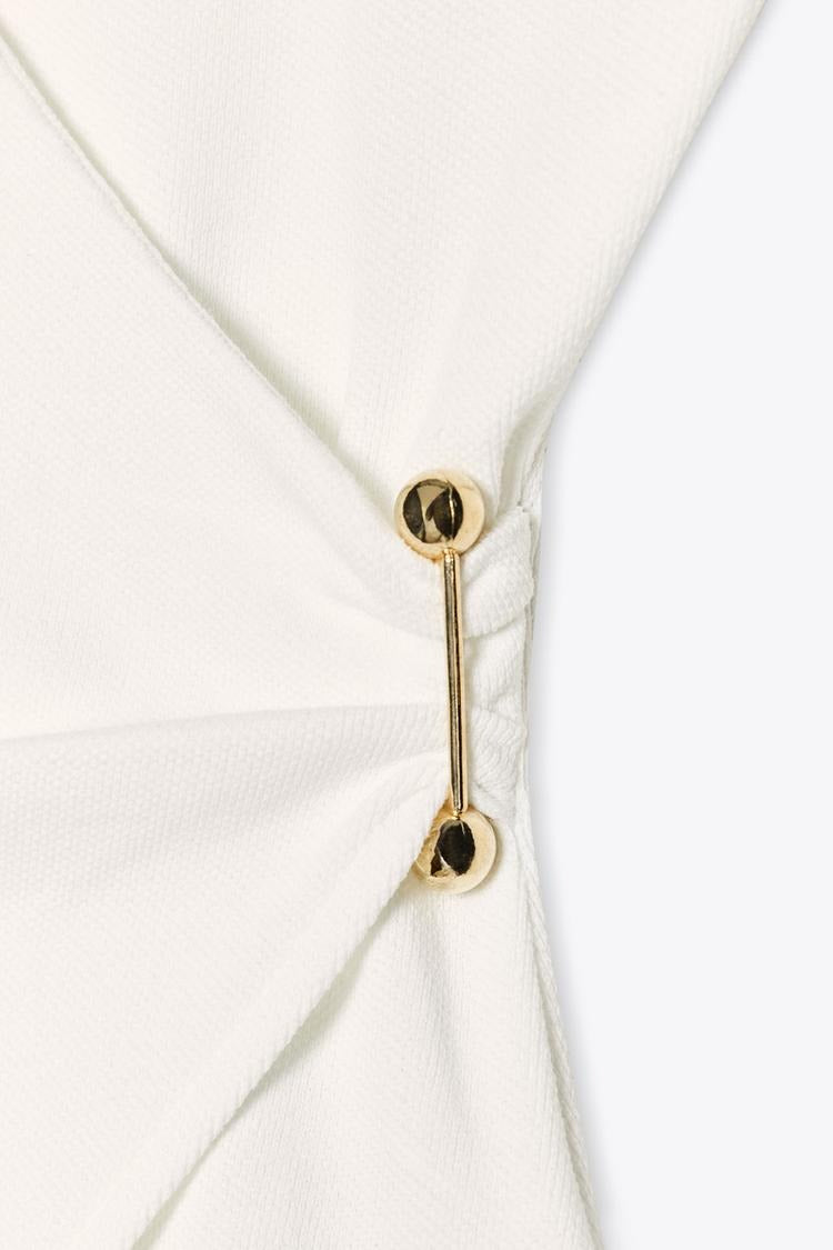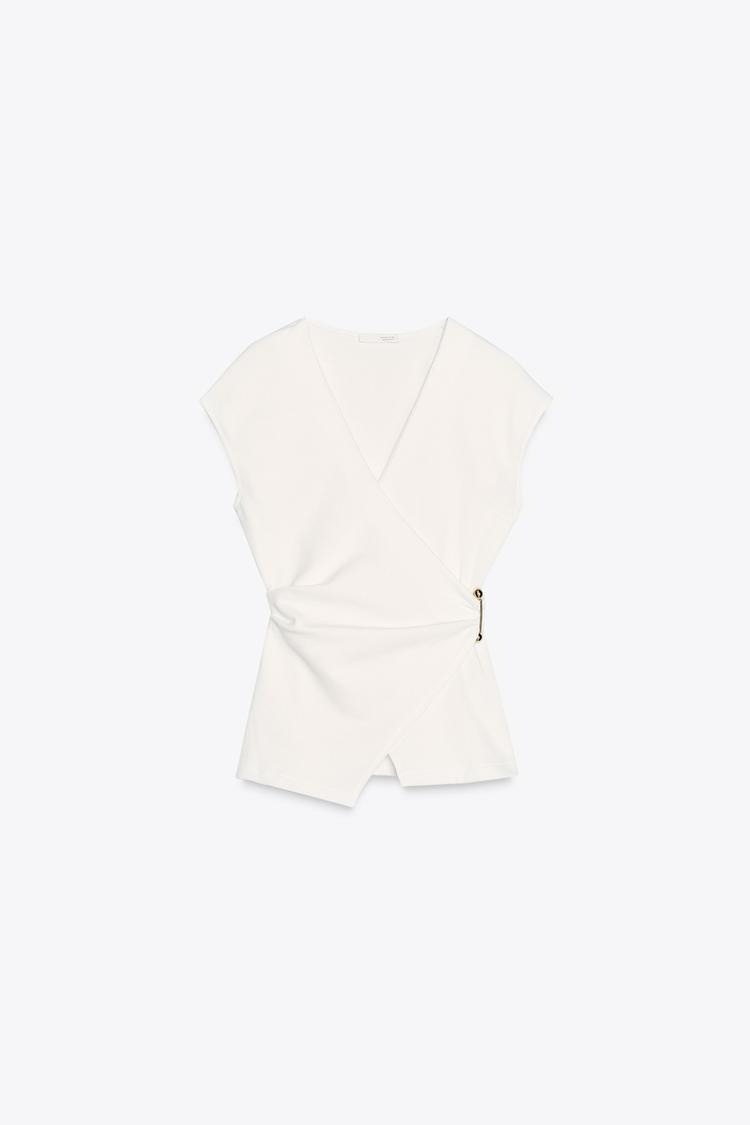 • Haut à col croisé avec fermoir métallique et coupe asymétrique
