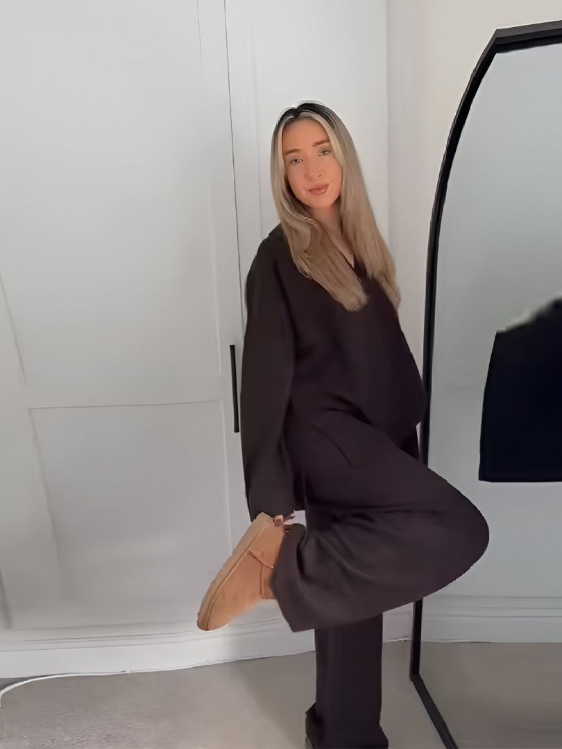 L’ensemble en maille fine conjugue douceur et élégance décontractée. Sa texture légère et agréable à porter offre un confort exceptionnel, tandis que sa coupe moderne met en valeur la silhouette avec subtilité. Un indispensable cosy-chic pour la mi-saison et l’hiver.