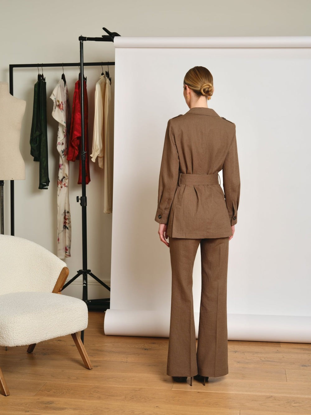 Cet ensemble couleur du Sahara incarne une élégance naturelle et chaleureuse, parfaite pour un style raffiné au quotidien. Composé d’un haut chic et d’un pantalon fluide assorti, il offre une harmonie de teintes inspirées des paysages ensoleillés. Sa coupe soignée et confortable permet de conjuguer allure et aisance, que ce soit pour une sortie en ville ou un moment plus habillé.